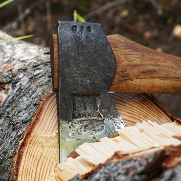 A light, powerful go-to axe for everyday use. The LAMACA Light Forest Axe is a highly versatile camp axe that can handle virtually any sized job, but is light enough to pack anywhere. The handle is slim, quick and comfortable, perfectly balanced with the weight of the head. No thinning is necessary. Shock absorption is excellent with no compromise in handle strength. The Scandinavian lug-pattern head is aggressive, sharp and efficient with a wide cutting edge. Edge retention is outstanding without any sacrifice in durability or ease of maintenance. Find out more at www.lamacaaxes.com